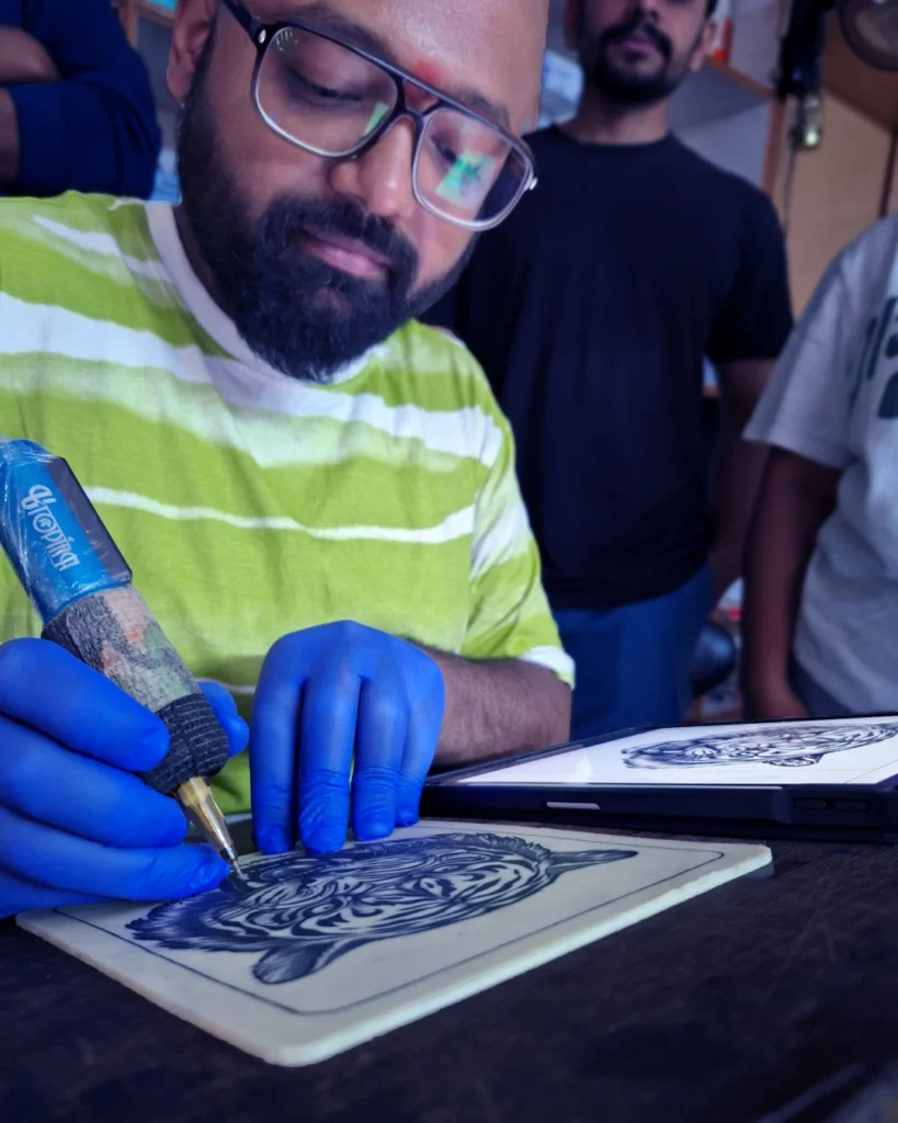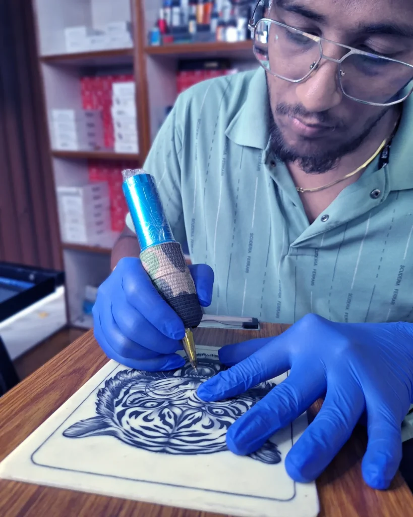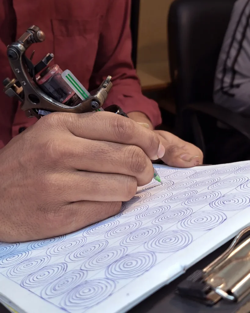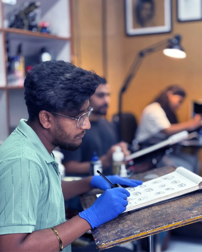 A tattoo class teaches the basics of tattooing, including design, hygiene, machine handling, and skin techniques. Students practice on synthetic skin, learn safety rules, and gain hands-on experience to build confidence and skill before working on real clients.